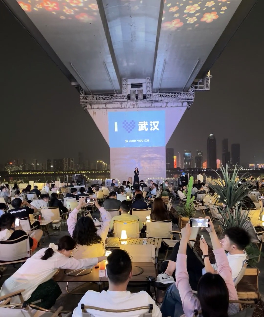 五一期間,長江二橋下的“江遇”橋墩電影吸引了眾多游客。景區(qū)供圖