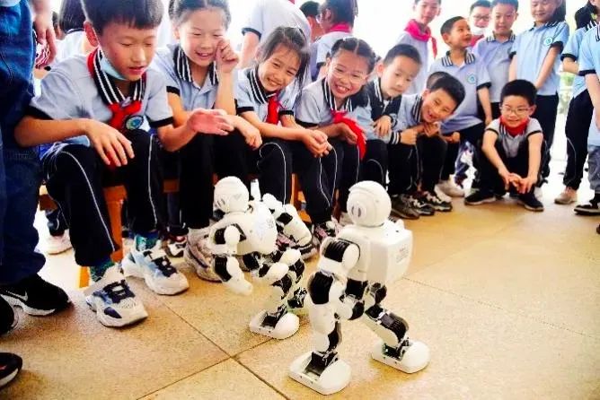 學(xué)生們?cè)谡n堂和機(jī)器人互動(dòng)。 圖/長(zhǎng)江教育研究院