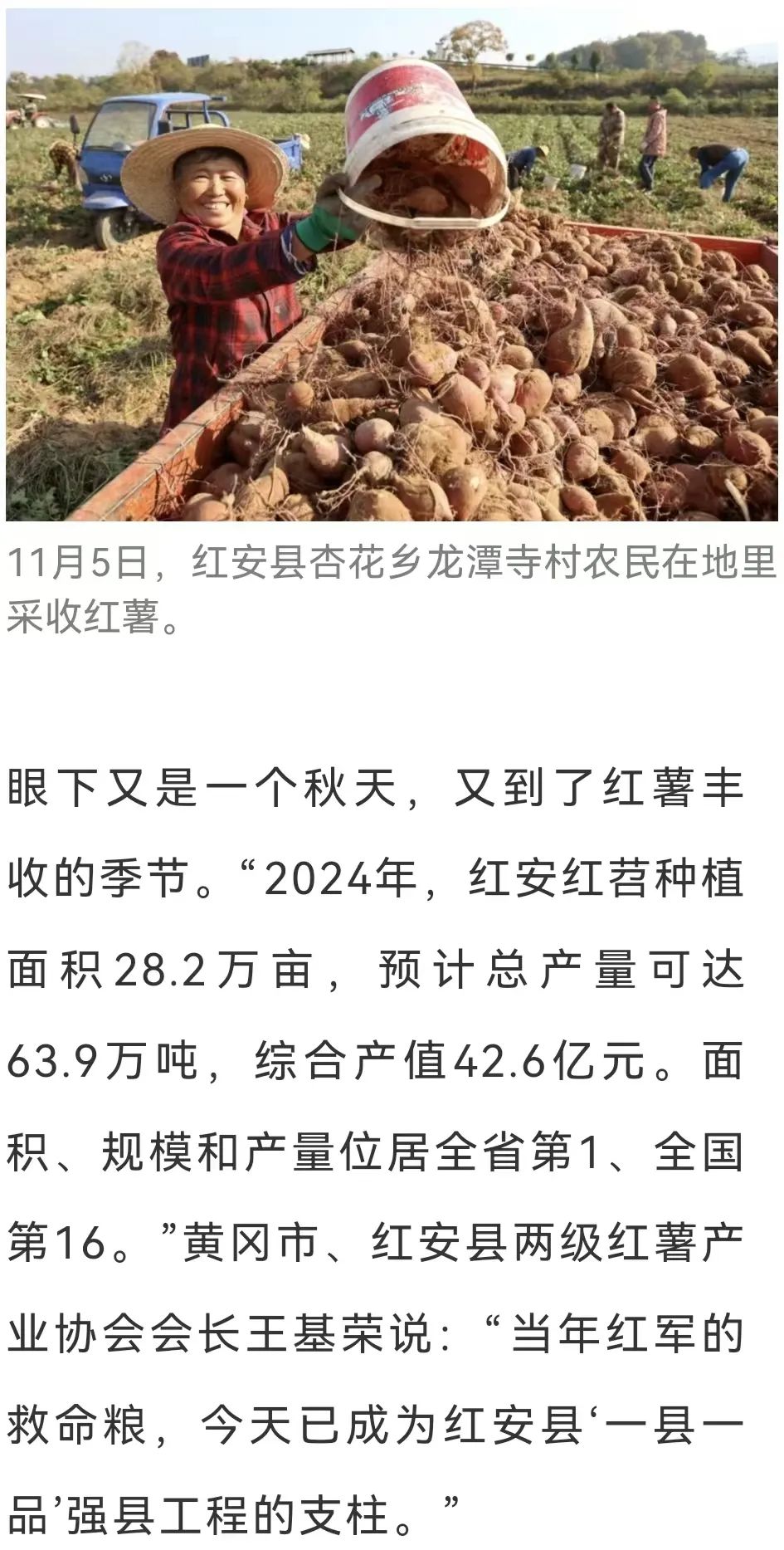 “公司一年可加工紅薯6萬噸,生產休閑食品、粉面食品30多種,2023年銷售額超過6000萬元。”11月6日,在將鄉(xiāng)紅(湖北)食品股份集團有限公司的展廳里,公司行政主管王丹指著展廳里琳瑯滿目的產品自豪地說:“現(xiàn)在良品鋪子網上銷售的紅薯干,都是我們公司的產品?!?/p>