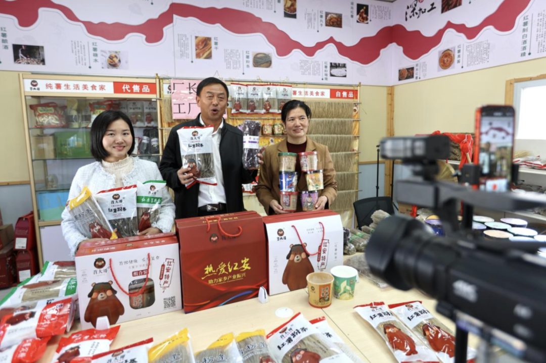 銷售決定生產,市場決定命運。近年來,紅安縣通過走出去參加粵港澳大灣區(qū)農產品產銷對接會、第十屆北京農業(yè)嘉年華等展銷活動,請進來舉辦紅安苕訂單種植收購簽約會,線上線下共同發(fā)力等途徑,不斷拓展紅薯銷售渠道,推動紅安紅薯走出紅安、走向全國、邁向國際。目前,在線上,紅安紅薯主要通過苕大哥、瑞灃農業(yè)、紅土優(yōu)選等紅苕電商直播基地網絡銷售;線下,鮮食紅薯主要銷往廣州、武漢四季美農貿市場及大專院校、機關食堂等;鮮食加工產品主要銷往本地加工企業(yè)及福建等地客商。2023年,七里坪鎮(zhèn)福德橋村與美國理想食品簽訂300噸產值660萬元的粉絲訂單,紅安紅薯成功走出國門。