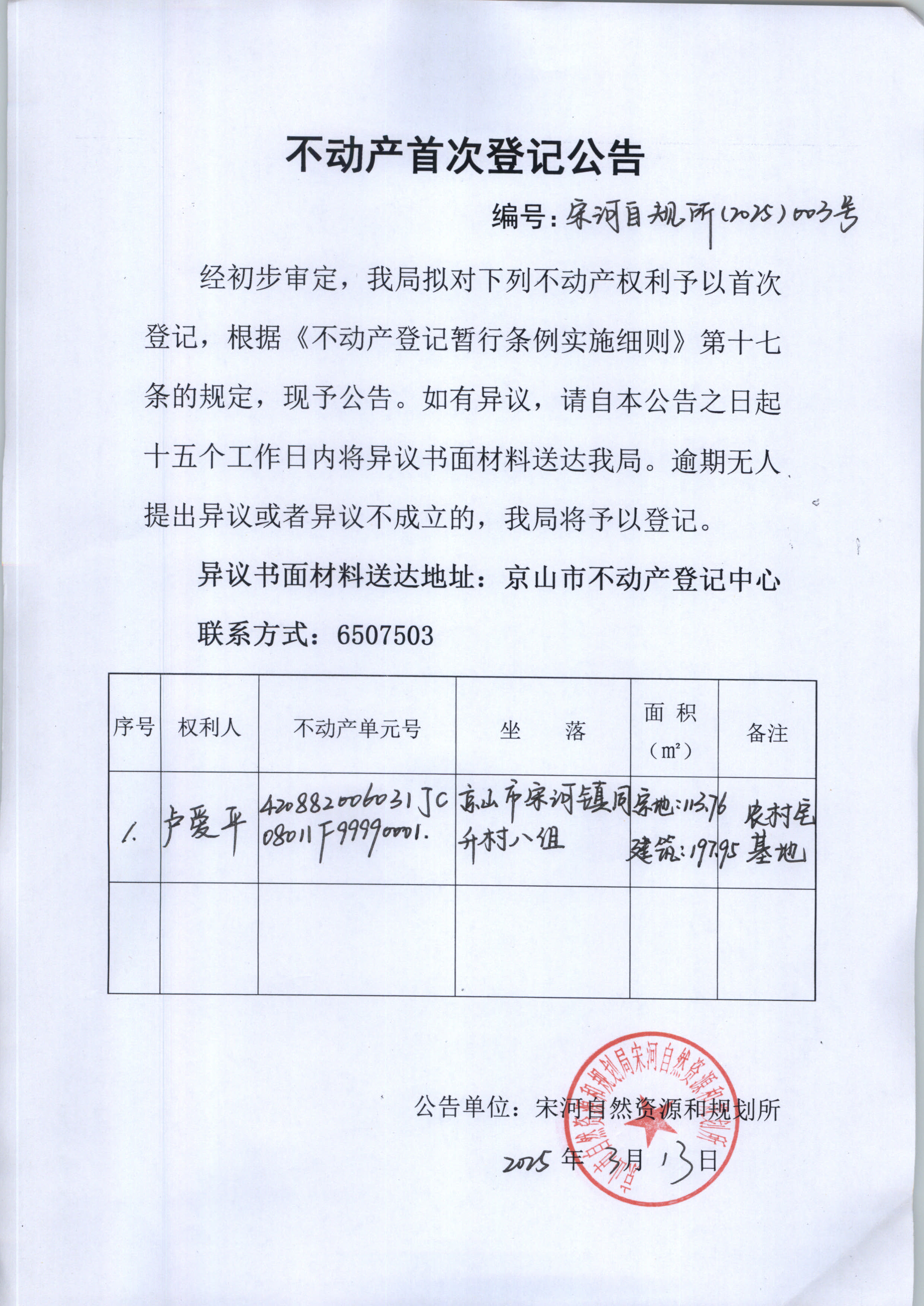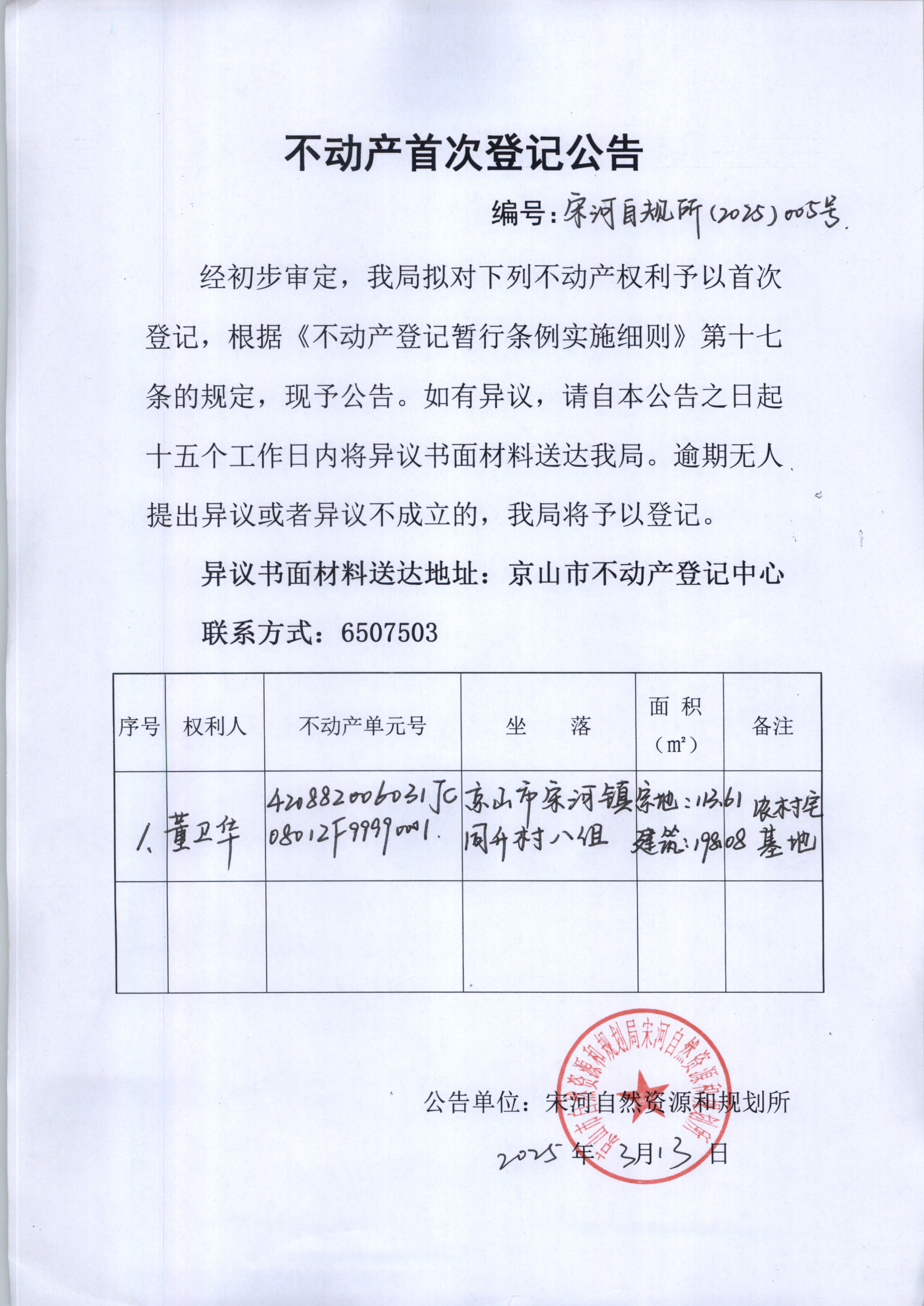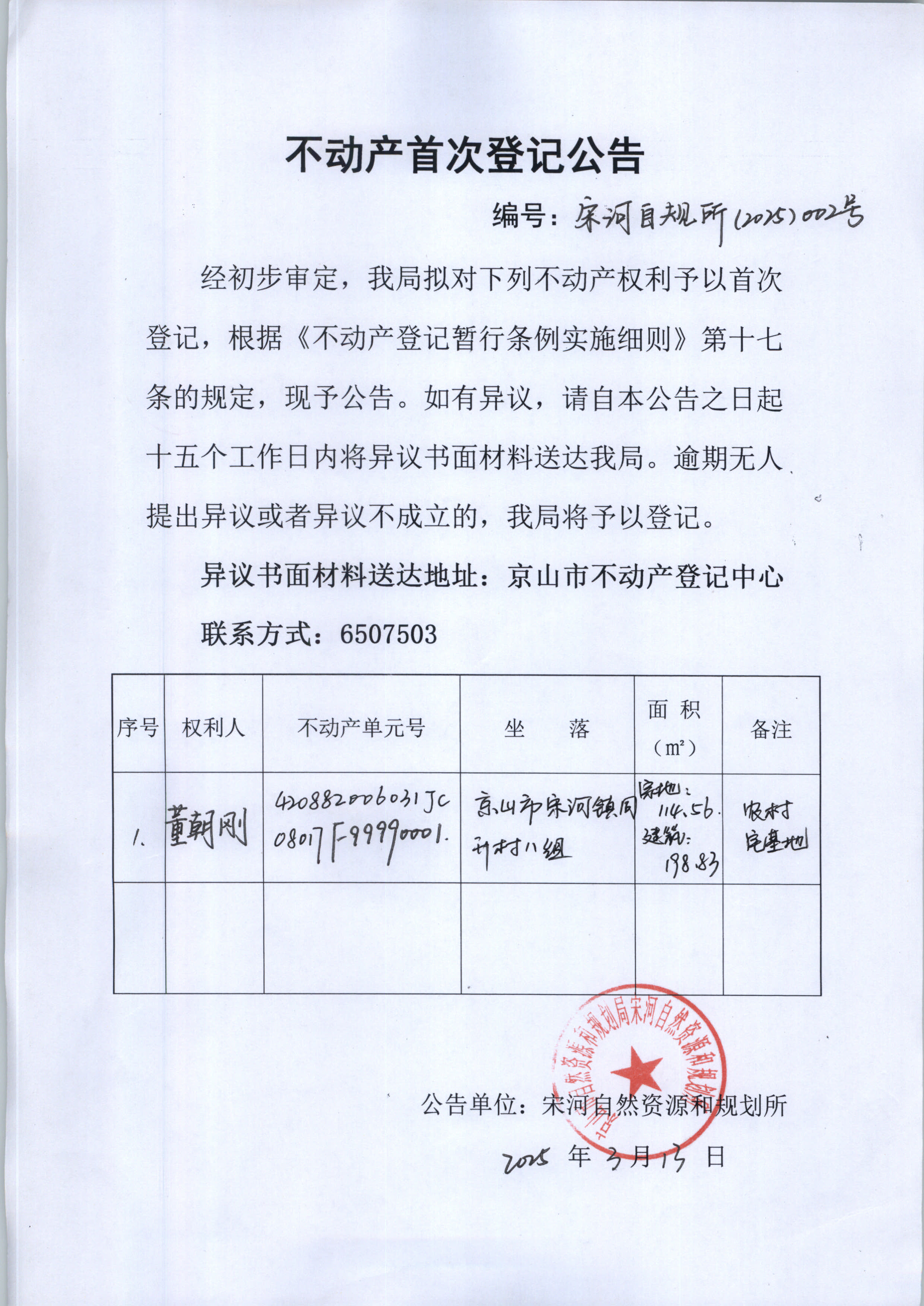 不動產(chǎn)首次登記公告