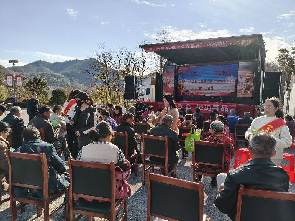 活動現(xiàn)場,村民們早早坐在舞臺下等待好戲開場。舞臺上,演員們表演著精心準(zhǔn)備的戲曲節(jié)目,優(yōu)美的唱腔和精彩的表演贏得了臺下觀眾陣陣掌聲。而在舞臺一側(cè),禁毒志愿者們則向過往村民發(fā)放禁毒宣傳資料。