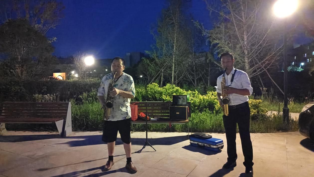 近日,走進錢場鎮(zhèn)東河公園,悠揚的薩克斯樂聲穿透暮色。步道上,三三兩兩的居民或慢跑健身,或推著嬰兒車漫步,路燈將人影拉得悠長,勾勒出夏夜的愜意畫卷。