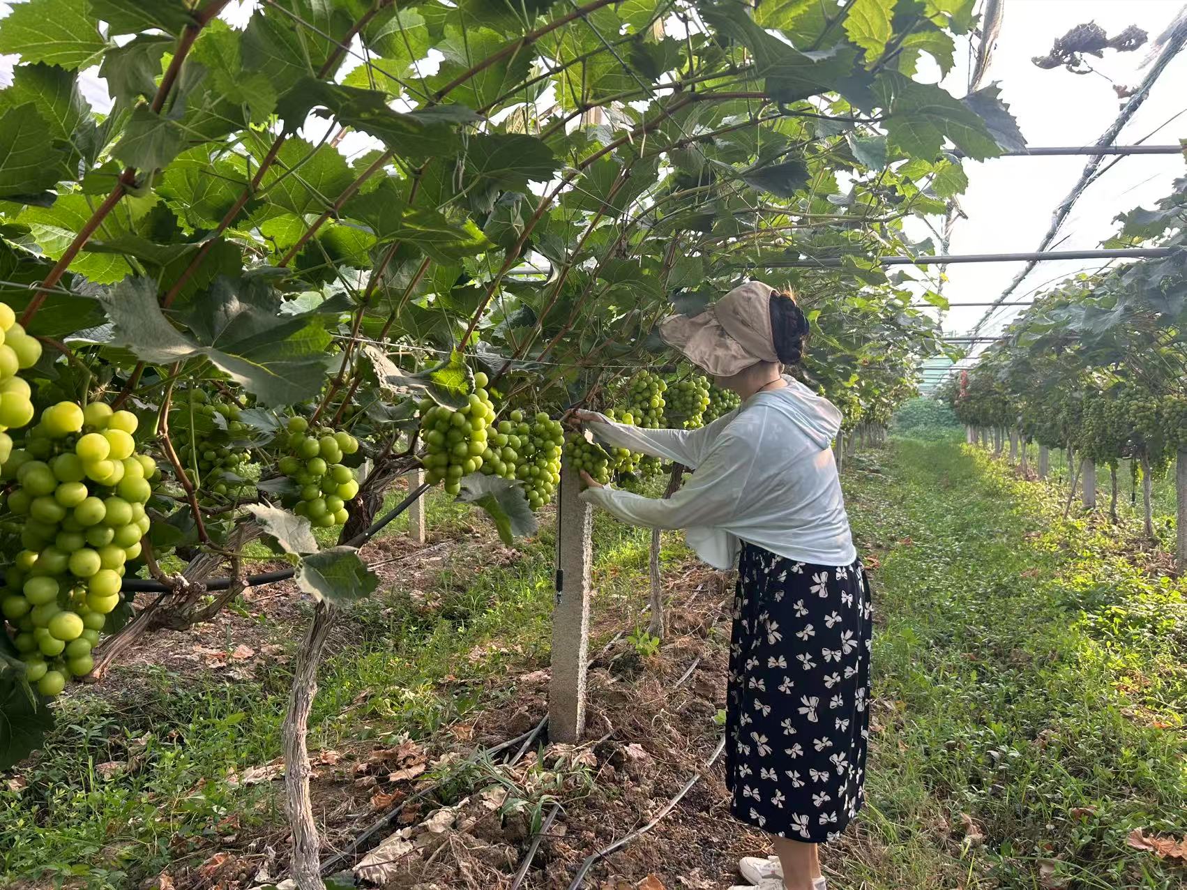 掐芽、施肥、剪枝、修果、套袋、摘果……一顆顆小小的葡萄串聯(lián)起一個個家庭的生計,帶動村民戶均年增收4000余元。農(nóng)忙時節(jié),園內(nèi)常雇傭20余名村里老人務工,日薪超百元?!凹议T口干活,顧家掙錢兩不誤!”務工村民王詠梅說。