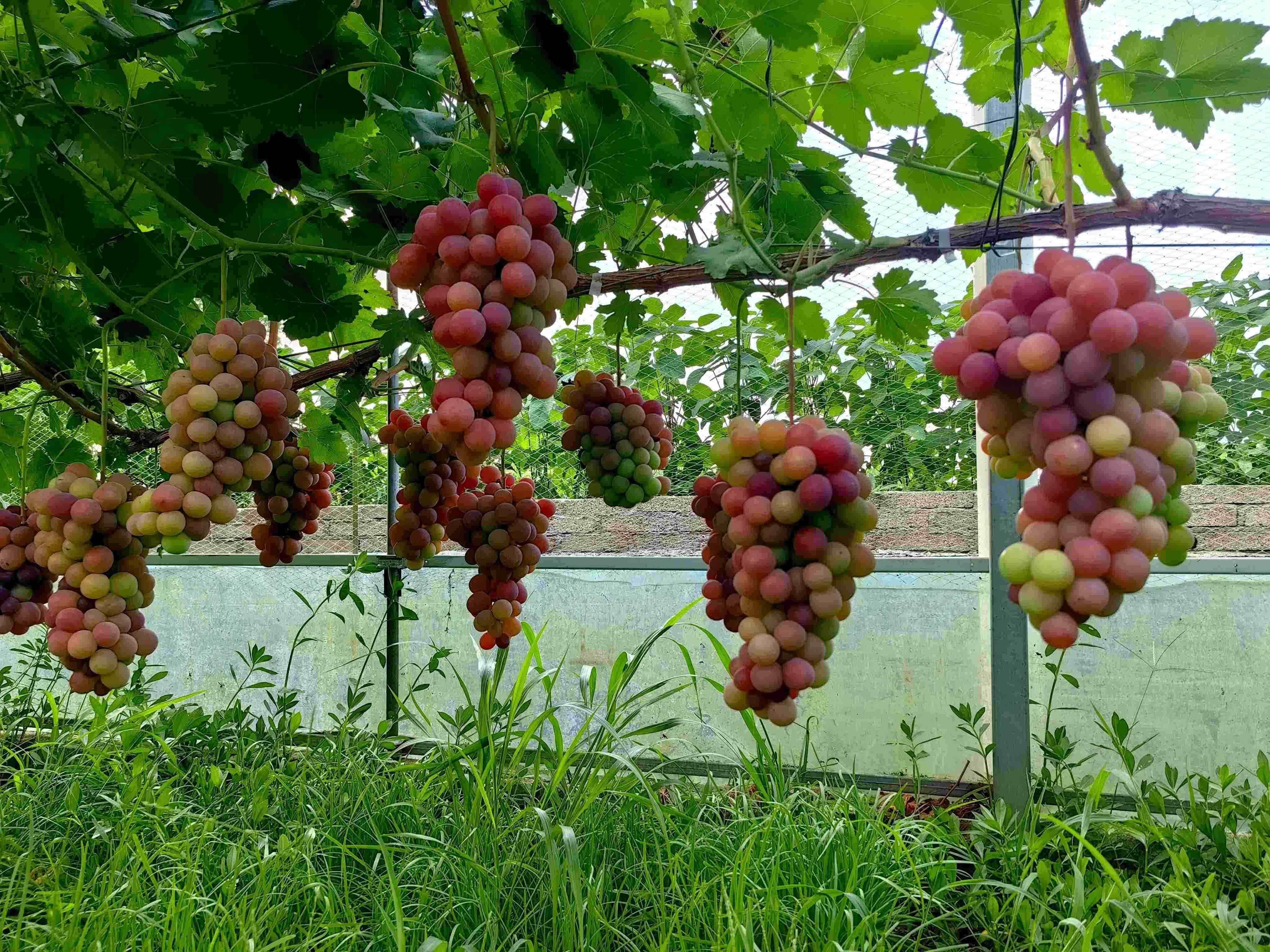 目前,采摘園內(nèi)的部分陽光玫瑰、金手指、玫瑰香等品種已成熟上市。游客們手持工具,在葡萄架下細(xì)心挑選,剪下一串串葡萄,感受采摘的樂趣。