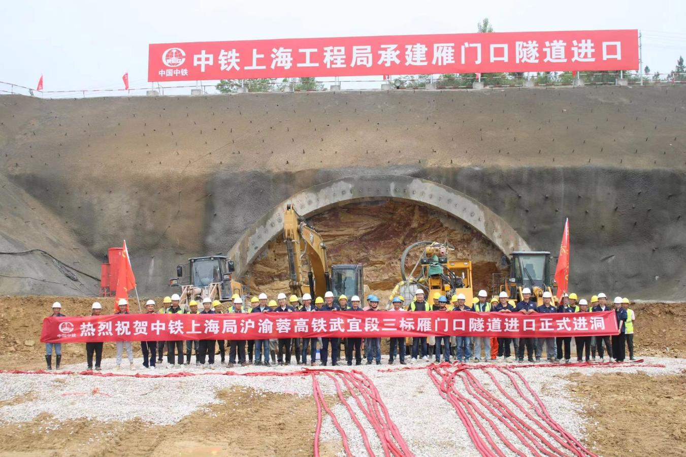 5月26日10時18分,繼蕭家山隧道開工后,滬渝蓉高鐵武宜段三標雁門口隧道進口舉行進洞儀式,標志著雁門口隧道進入實質性施工階段。雁門口隧道為單洞雙線隧道,全長1461米,設計時速350km/h。進洞儀
