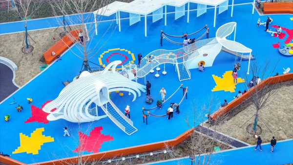 在剛剛公布的《城市兒童友好空間建設(shè)可復(fù)制經(jīng)驗(yàn)清單(第二批)》名單中,武漢市遠(yuǎn)洋鯨奇兒童友好口袋公園改造項(xiàng)目榜上有名。這個(gè)以兒童友好為主題的口袋公園,有滿足兒童多元運(yùn)動(dòng)需求的區(qū)域,還有兼顧老人需求的健身設(shè)備、舒適座椅。