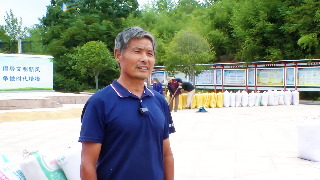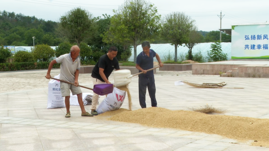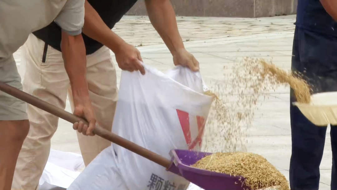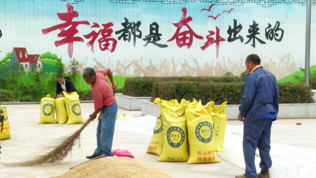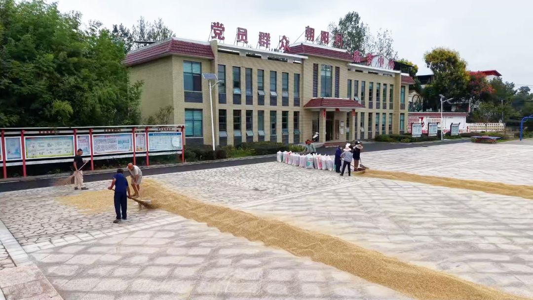 秋分時(shí)節(jié),搶收正忙。在朝陽村村委會(huì)門口的活動(dòng)中心廣場(chǎng),種糧大戶李其海正帶著村民翻曬稻谷,曬干的糧食隨即運(yùn)進(jìn)倉(cāng)庫,整個(gè)流程順暢又高效。