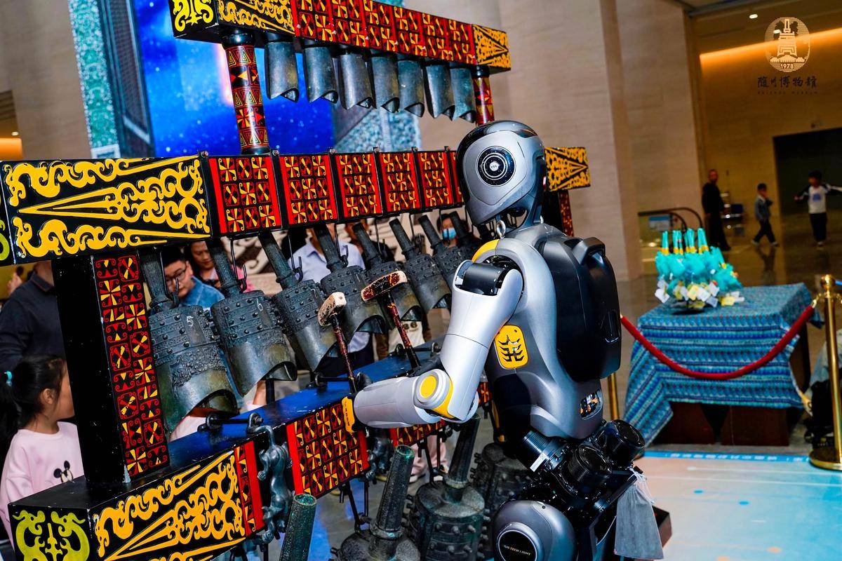 在隨州博物館,曾侯乙編鐘與人形機(jī)器人跨界合奏。(湖北日?qǐng)?bào)全媒記者 易雯 攝)